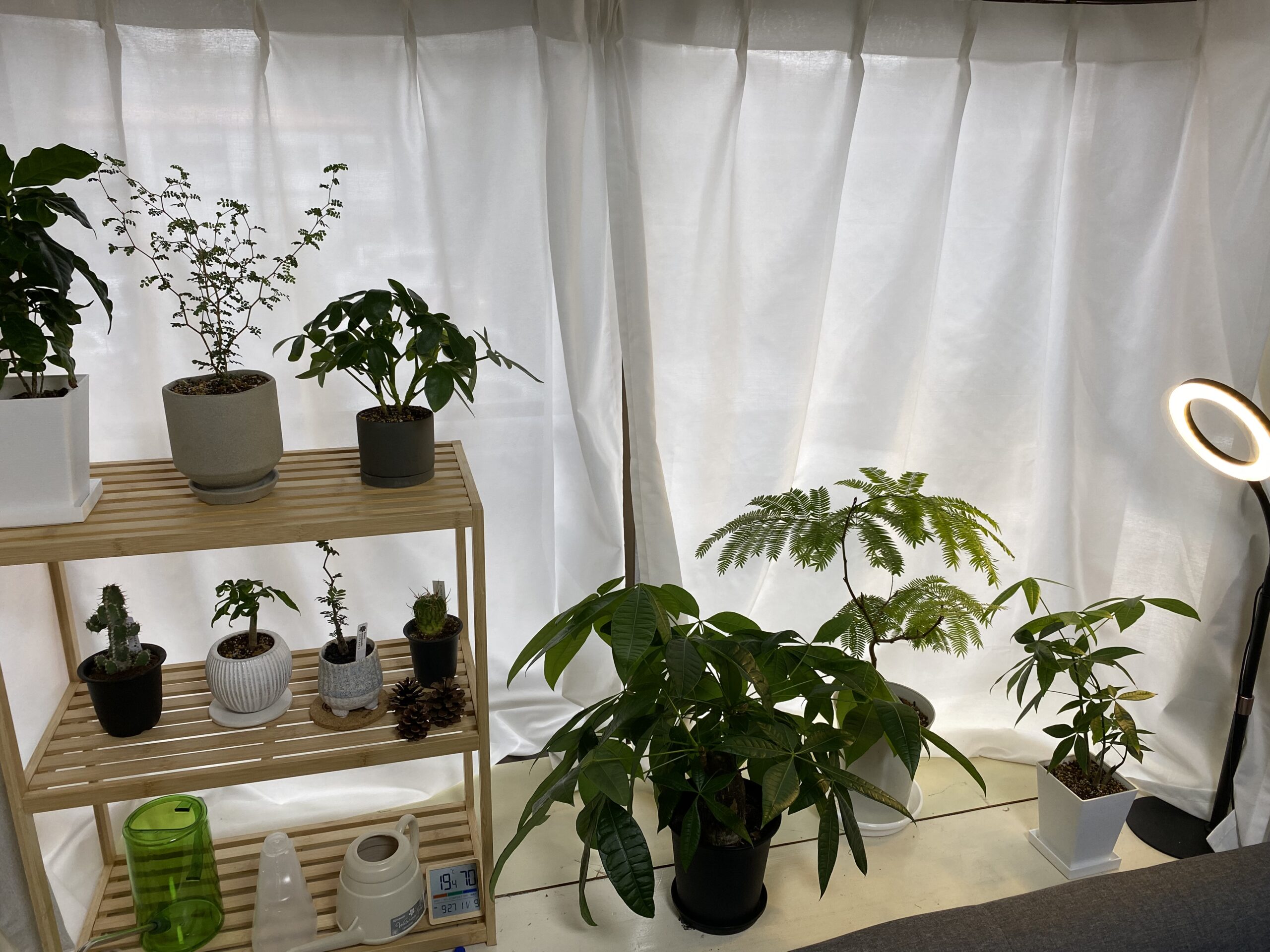 現在私は窓際に多くの観葉植物を置いています。窓際から少し離すにもスペースが足りなくなる可能性があったため、室内に別の観葉植物置き場を設置しする必要がありました。