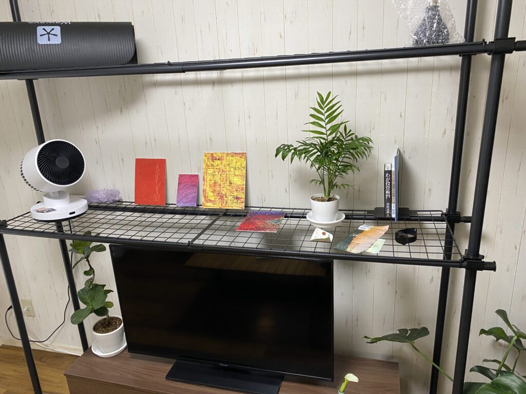 ただ、スペースの確保が難しかったため、デッドスペースだったテレビ上に棚を作成して、冬場の観葉植物置き場にしようと試みました。