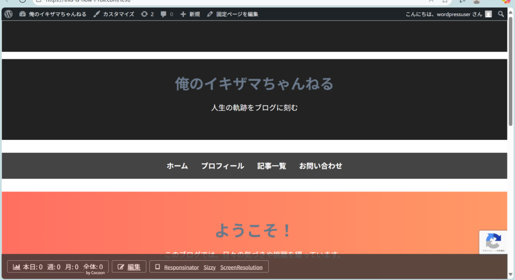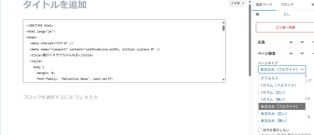 公開すると、そのHTMLがブラウザ側で解釈されてwebページとして表示されますが、wordpressのデフォルトでサイドバーや、ヘッダーが付与されています。